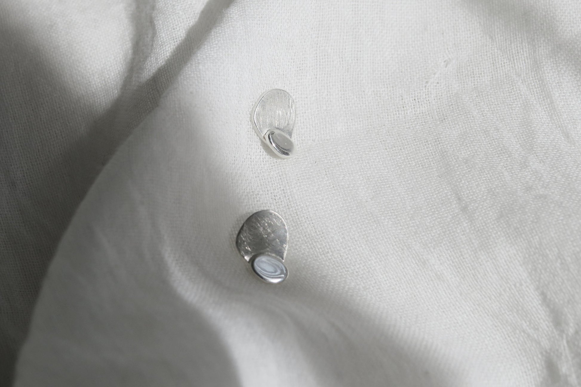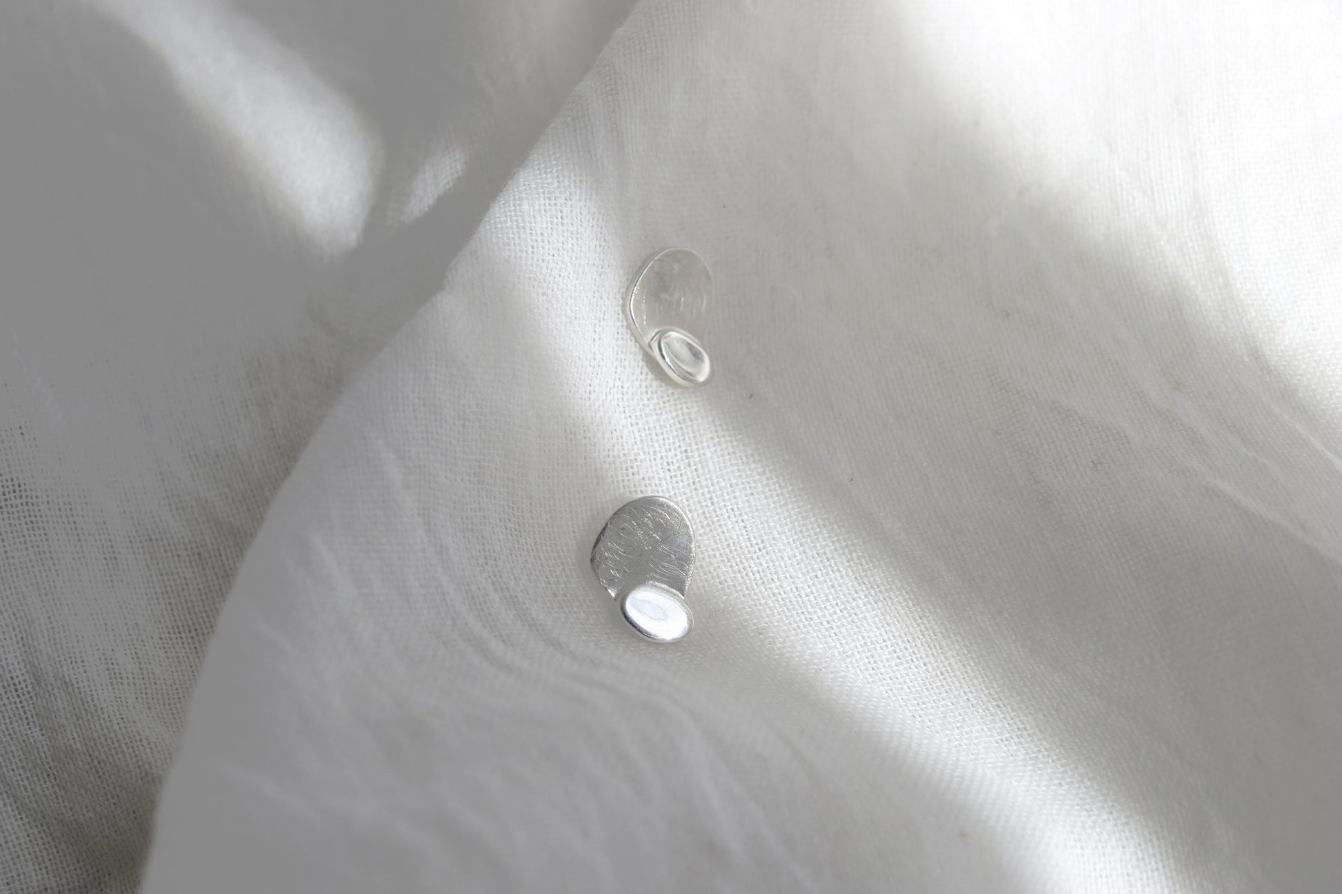 Pendientes pequeños con formas inspiradas en hojas de plata 925 combinando el acabado brillante y mate. Cierre con presión.
